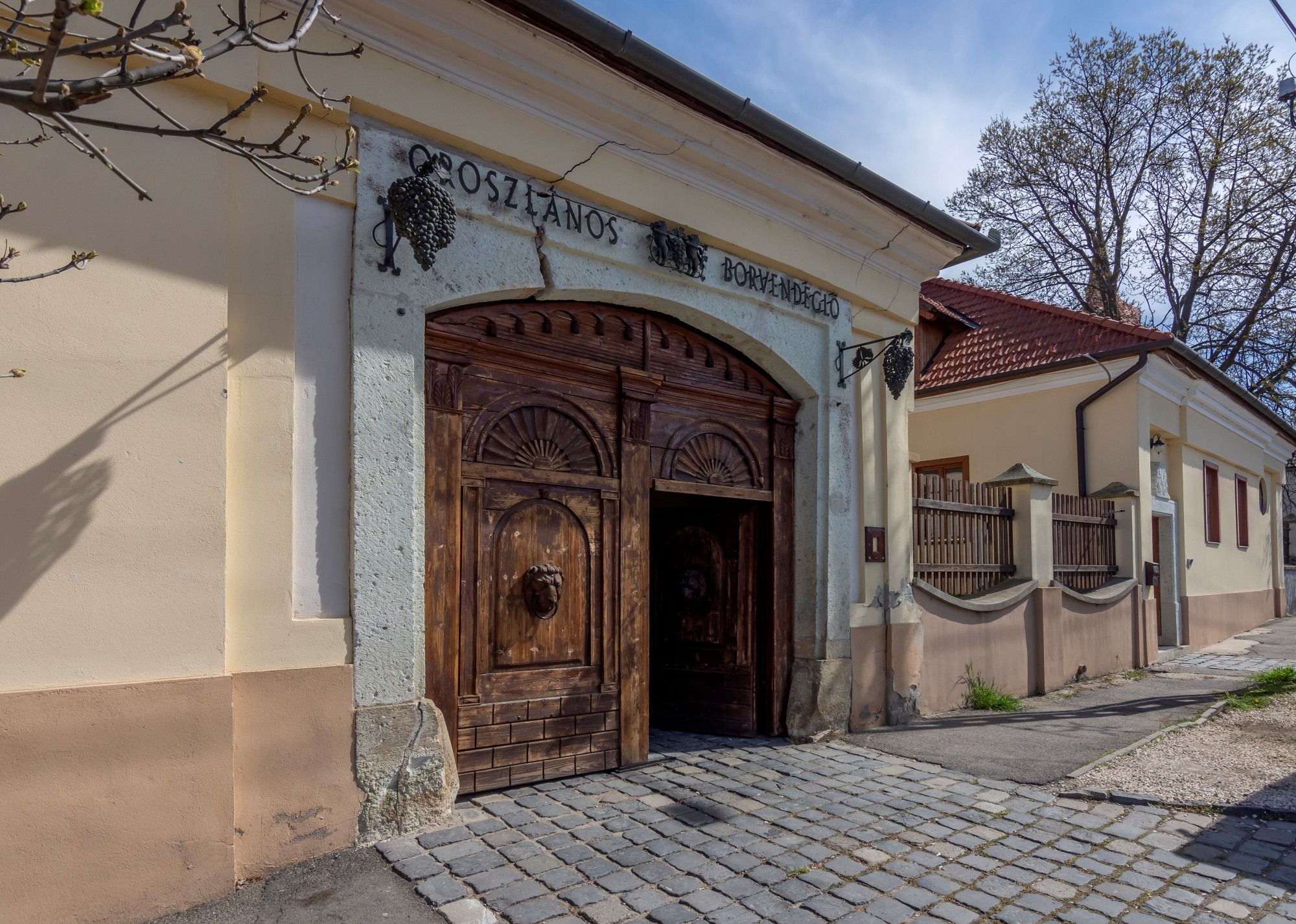 A ház több néven is ismert, első építtetői révén Szirmay-kúria volt, később helyi elnevezése a díszes kapuzata után Oroszlános-ház, 2012-ben pedig Oroszlános Borhotel lett. A XVII. században épített nemesi kúriát gazdagon átépítették a XVIII. század végére (Franz Anton Hillebrandt a Magyar Királyi Kamara vezető építésze tervei szerint), majd a XIX. században ismét korszerűsítették, miközben az épület régi fényét még megőrizte. A XX. században a ház csipkerózsika álmát aludta, a világháború után díszeit elvakolták és lakásokat alakítottak ki benne. 2006-ban új tulajdonosa úgy döntött, hogy felébreszti az alvó szépséget, az épületben helyi jellegzetességeket kínáló éttermet alakítottak ki, s az épület kibővítve, utcai homlokzata pedig eredeti állapotát visszanyerve tündökölt.