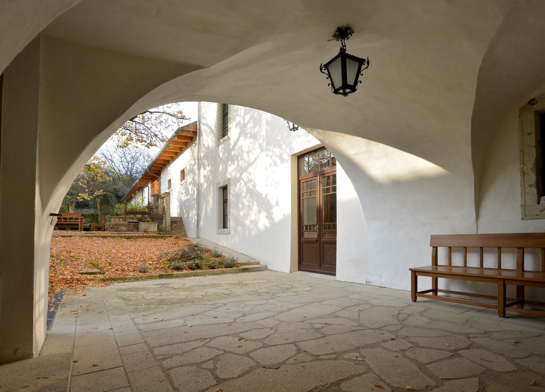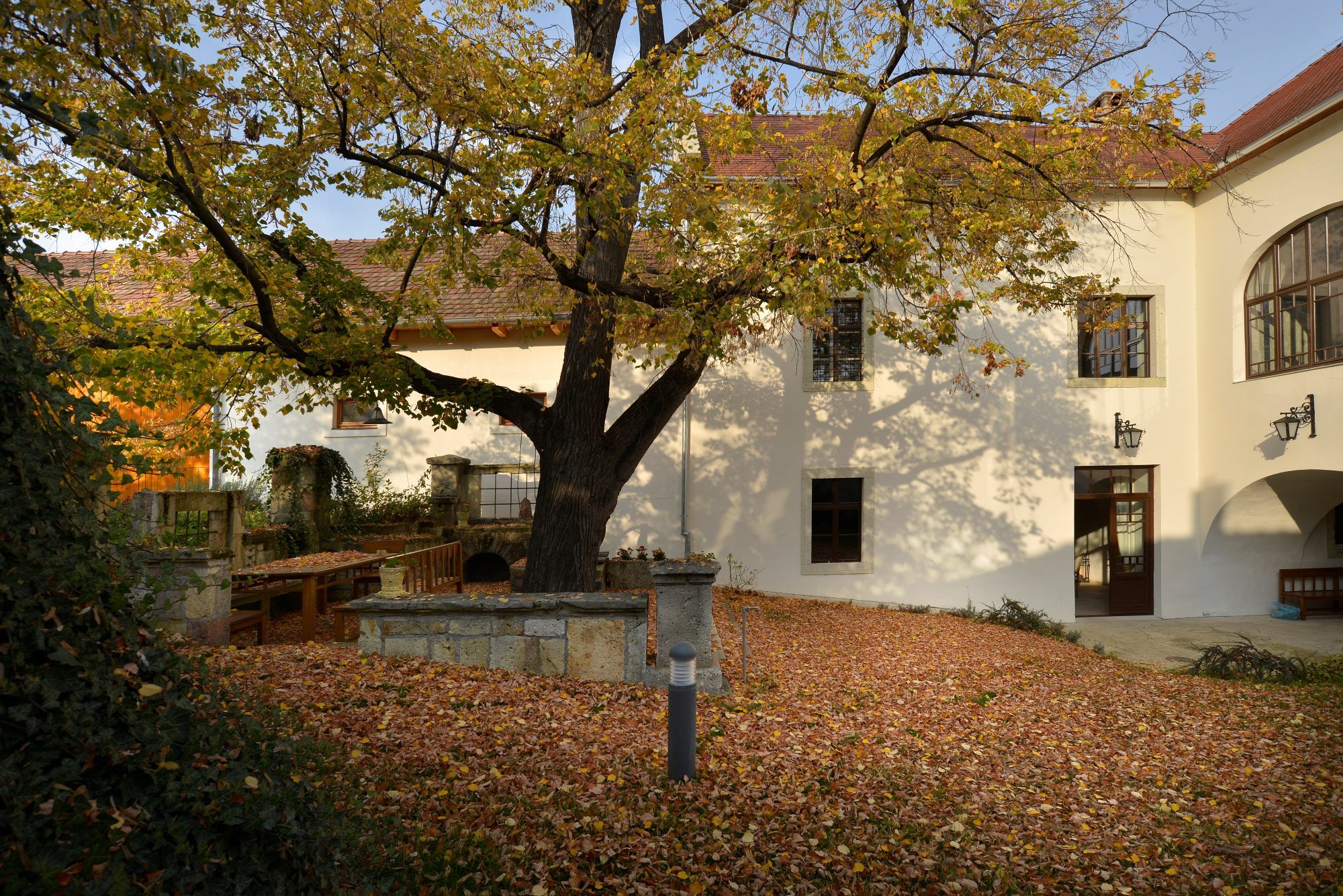 A kúriaépület felújítása során az alsó szinten kóstoló, iroda és vinotéka készült, a felső szinten pedig három elegáns apartman díszteremmel és hangulatos verandával. Ezek elhelyezéséhez nem volt szükség komoly alaprajzi beavatkozásra, azok szervesen megtalálták helyüket a házban. Az épület nagy értéke, hogy megmaradtak és rekonstruálhatók voltak egykori belső díszítőfestései, méghozzá több időbeli réteg egymás melletti bemutatásával.
